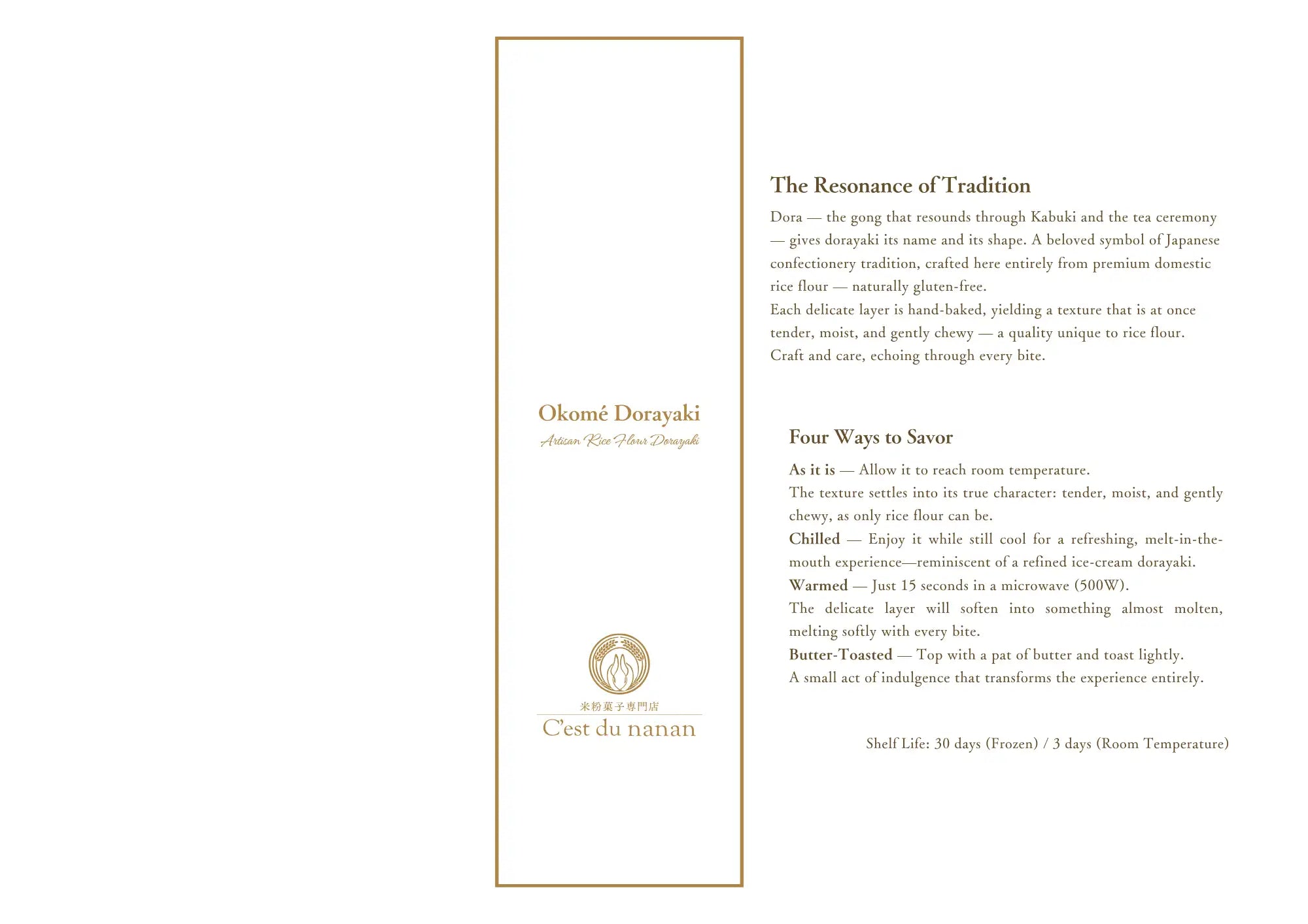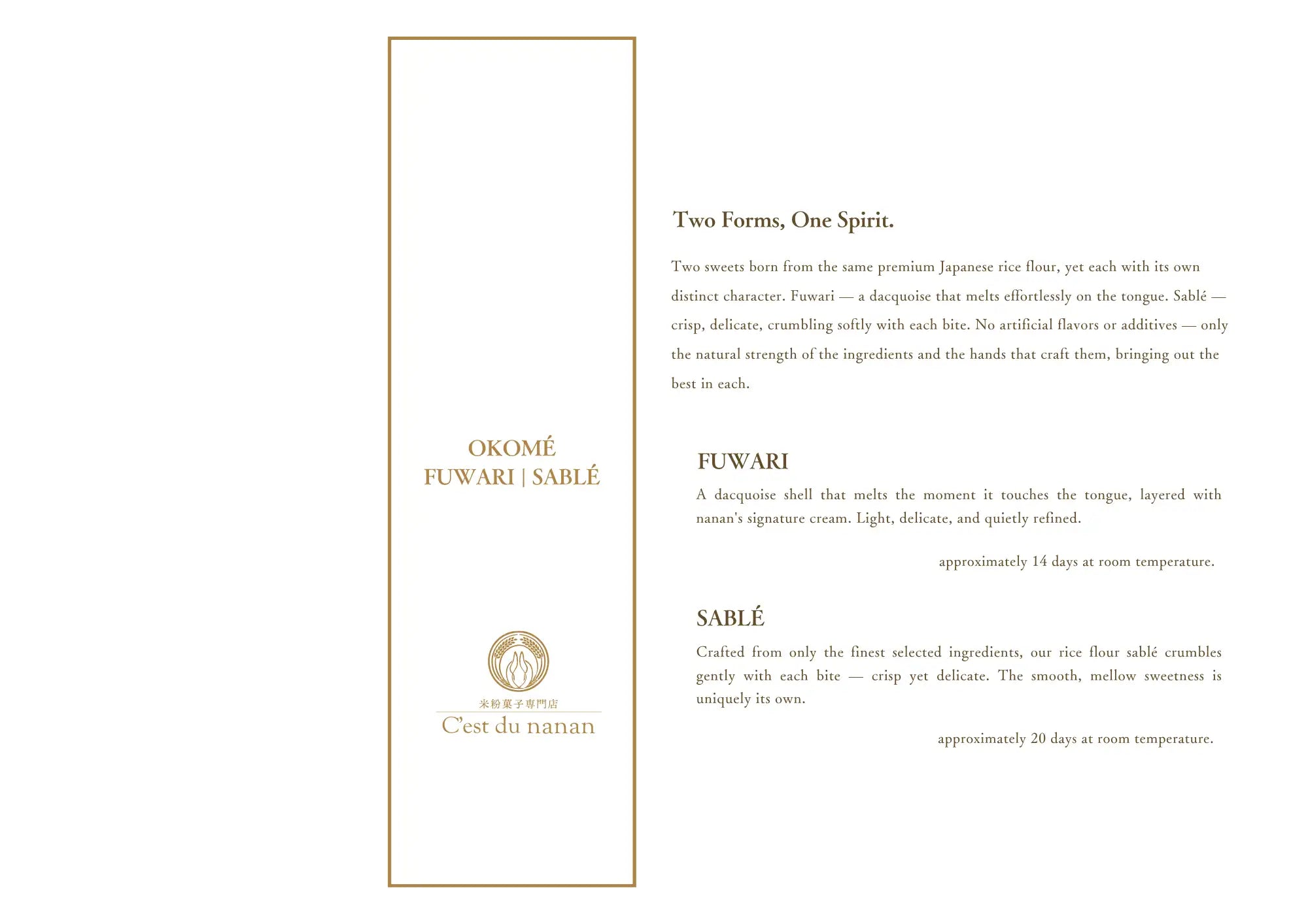 Naturally gluten-free and crafted from the finest rice flour, this silken creation melts away with effortless elegance—a new evolution of Japanese tradition, born from the heart.