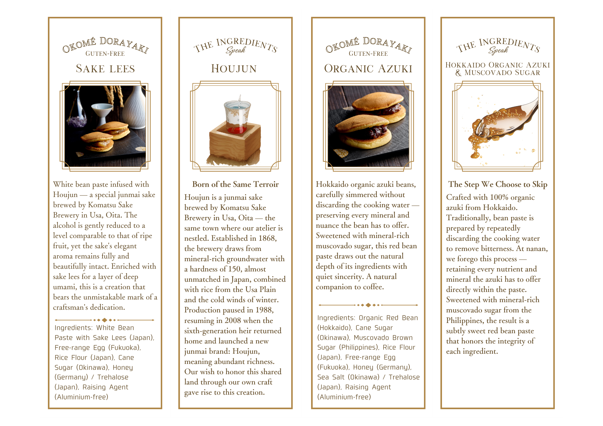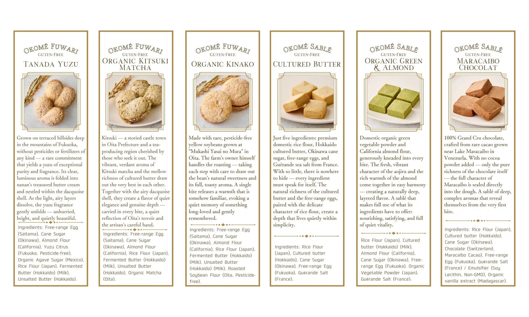 - Naturally Gluten-Free, Genuinely Delicious Made entirely with Japanese rice flour, our sweets are 100% gluten-free — not as a compromise, but as a natural expression of the ingredient. Suitable for those with celiac disease, gluten intolerance, or anyone who simply appreciates fine pastry made with intention.